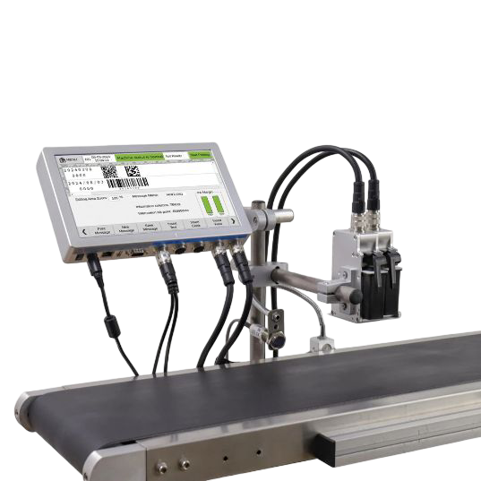 Drukarka T210E z dwiema głowicami drukującymi zapewnia szybkie i precyzyjne znakowanie tekstu, kodów kreskowych, QR i numerów seryjnych na różnych powierzchniach. Urządzenie jest niezawodne, łatwe w integracji z linią produkcyjną i ekonomiczne w eksploatacji.
